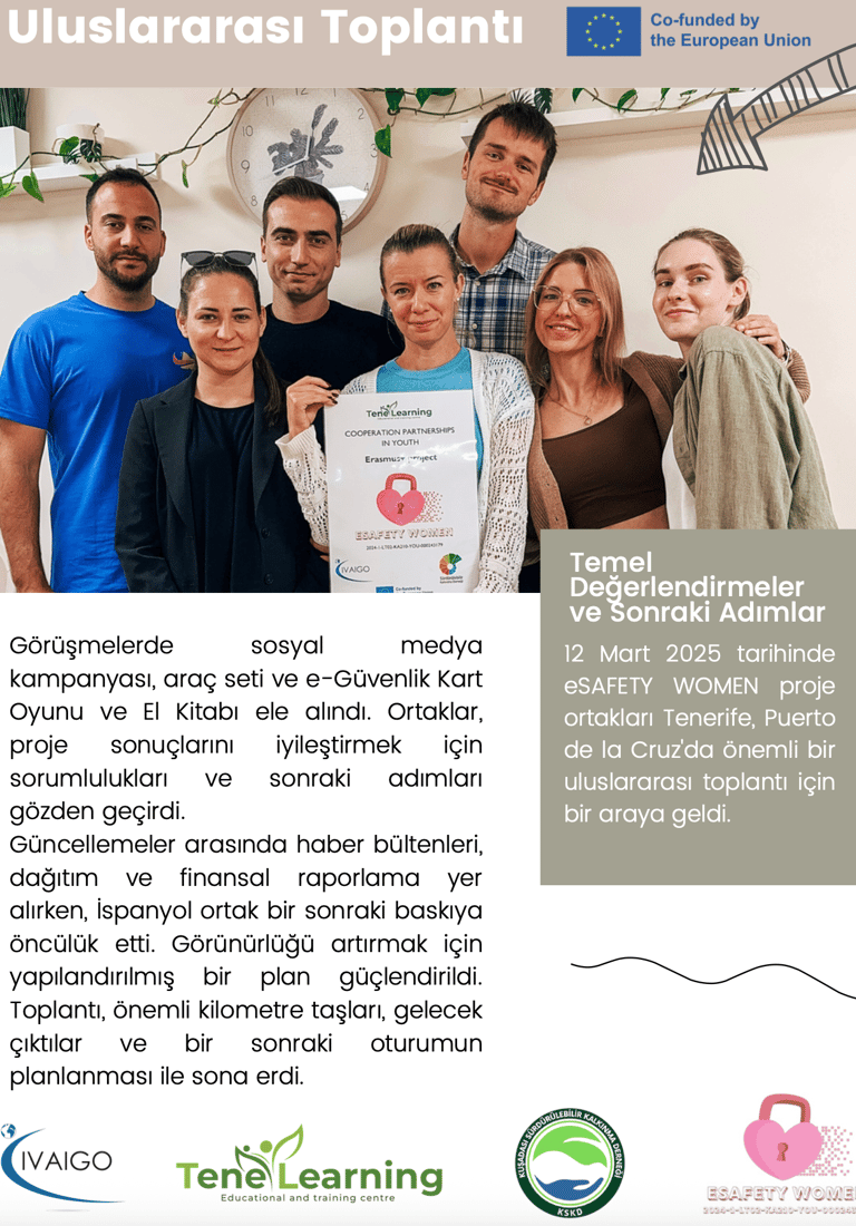 Bu proje, dezavantajlı genç kadınlara yönelik çevrimiçi cinsiyete dayalı şiddetle (OGBV) mücadelede medya okuryazarlığını güçlendirmeyi ve e-güvenliği artırmayı amaçlamaktadır. Gençlerin dijital ortamda güvenle yer alabilmeleri, çevrimiçi tacizi tanıyıp müdahale edebilmeleri, çevrimiçi yurttaşlık faaliyetlerine katılımlarının artması hedeflenmektedir. Proje, e-Güvenlik Araç Seti ve Kart Oyunu gibi araçlarla farkındalık ve bilgi sağlamayı, böylece kapsayıcı ve güvenli dijital alanların oluşumuna katkıda bulunmayı planlamaktadır.